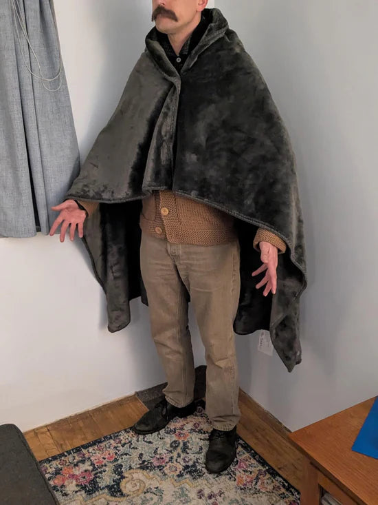 Ranuha is designed with a one-size-fits-all cut that comfortably fits most body types. The shawl style wraps and stays secure.